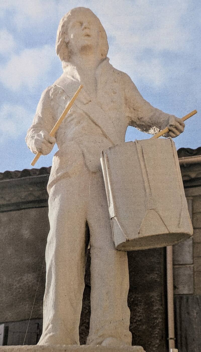 Je le Cite "En 1907 elle reçut une commande du ministère de la Guerre pour une statue du "petit tambour Beyle" (confondu avec le jeune Joseph Bara dans la fiche des archives nationales F/21/4192 relative à cette commande). L'année suivante la statue à mi-corps en plâtre du petit tambour (cette fois sous son vrai nom) est exposée au Salon des Artistes français (n° 3010 du catalogue) et son tirage en bronze est commandé et envoyé à l'école supérieure de Limoux (aujourd'hui lycée Jacques Ruffié)"